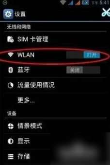 如果全面飞机大战连接失败的话,我们可以尝试使用我们手机中的无线设置,进入到WIFI设置界面后点击打开。