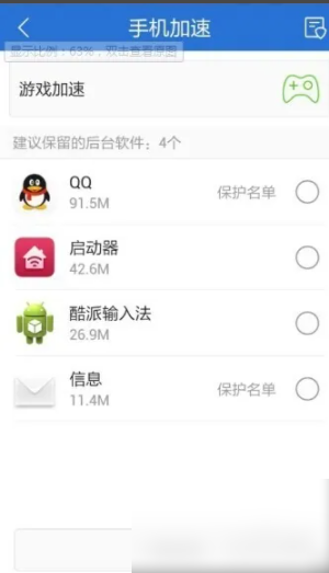 如果我们想要对我们的手机游戏进行加速的话,我们可以点击进入到腾讯手机管家的手机加速功能界面中,